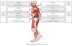 For some time now, there has been some debate around posture, specifically around the value in assessing it and whether or not we can truly have an impact on it through training. There are many aspects to managing posture beyond the scope of this article. From a training perspective, I have always proposed that you need to be aware of posture (and its consequences) so that you can efficiently manage it in some aspect of your programming. Dr. Vladimir Janda was highly influencial in the importance of thinking in terms of muscle function rather than strength (Figure 1). His upper crossed, lower crossed and layer syndromes allow us to think in terms of inhibition and facilitation as a way to identify systematic and predictable muscle imbalance: inhibited muscles are unable to achieve an appropriate level of tone to execute a movement, while facilitated muscles are pre-disposed to fire first, which only further inhibits the former. Although this may sound like a tightness or weakness problem, it’s actually a command problem: if we want successful activation of one muscle, we need deactivation of an overactive (facilitated) muscle, but this can’t be achieved with simple isolated strengthening and static stretching. Even the evolution of bipedalism that occurred over billions of years was accompanied by a large number of skeletal changes as an adaptation to repetitive behaviour towards the upright position. It’s largely about what you repetitively do.